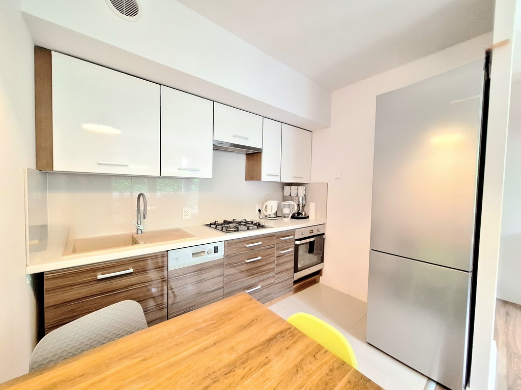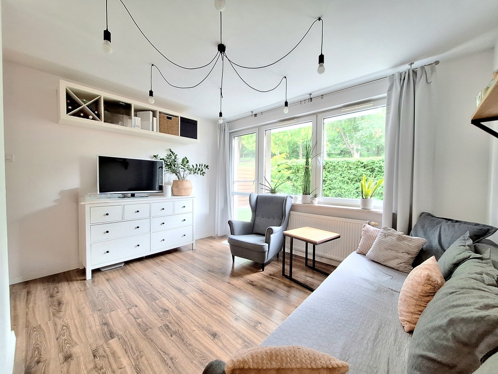 Na sprzedaż mieszkanie o powierzchni 46,34 m² z ogródkiem, położone na parterze niskiego bloku na zamkniętym osiedlu w Zdrojach, przy jeziorze Szmaragdowym.
