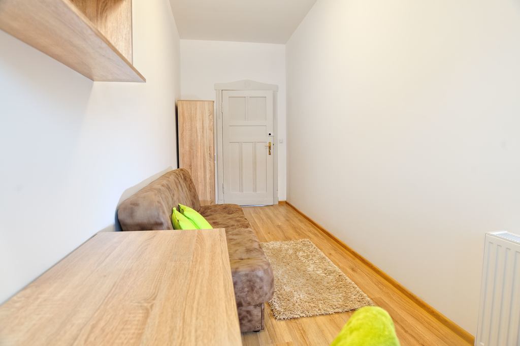 Pokój jest wyposażony w wygodną kanapę, szafę, biurko, lampkę.