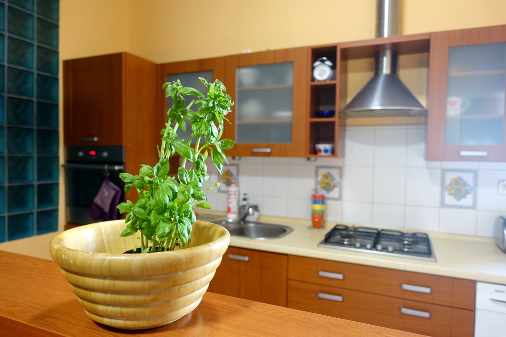Widna i funkcjonalna kuchnia jest w pełni umeblowana i wyposażona w kuchenkę gazową z piekarnikiem, lodówkę, kuchenkę mikrofalową i pralkę.