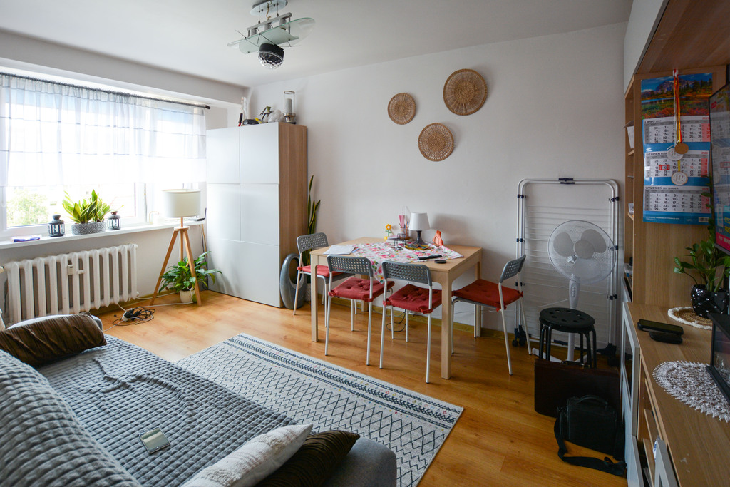 Funkcjonalne mieszkanie o powierzchni 33m2, położone na czwartym piętrze w budynku z lat siedemdziesiątych.