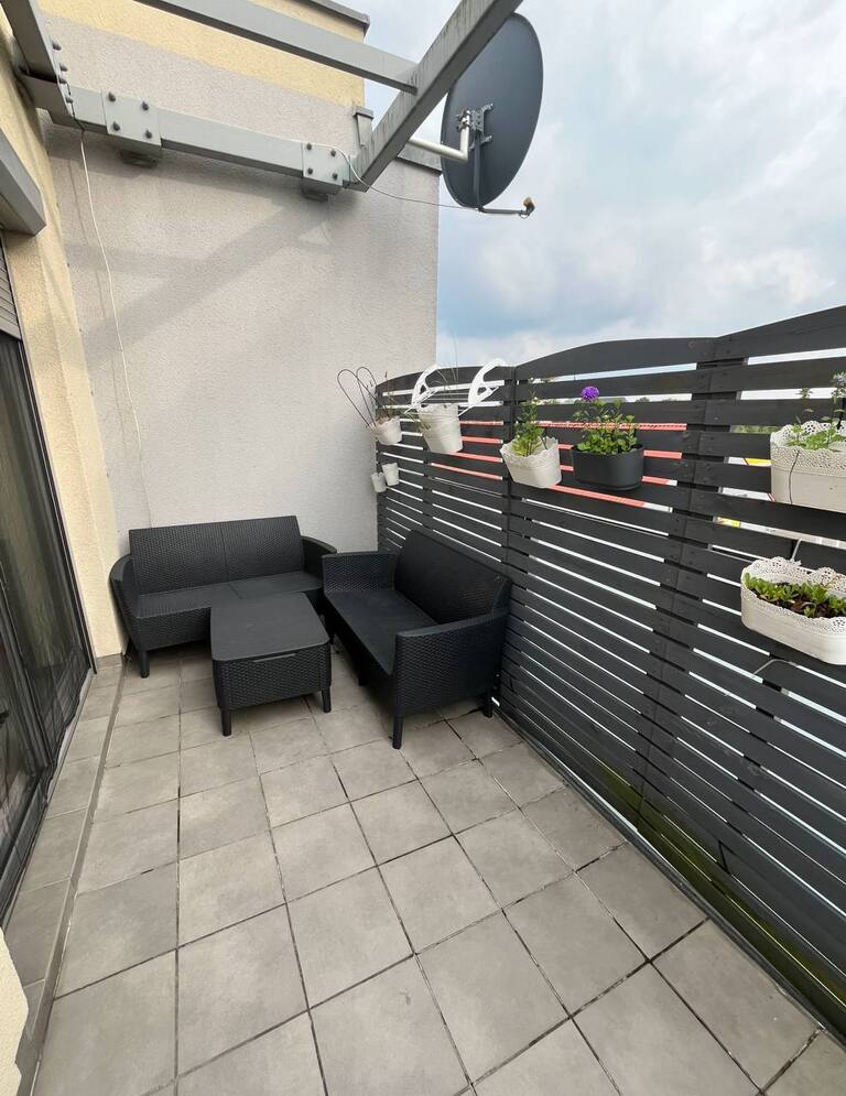 • Pokój dzienny z aneksem kuchennym i wyjściem na balkon