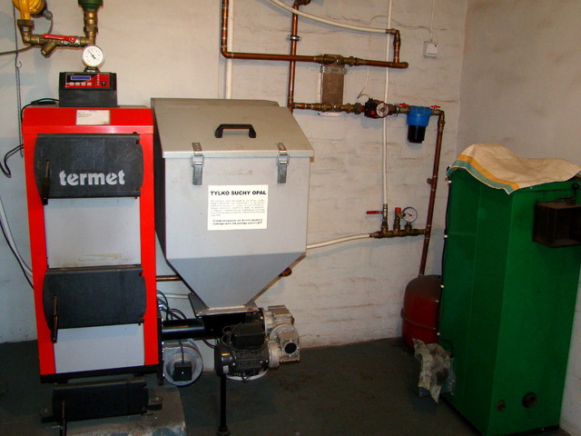 Ogrzewanie z nowoczesnego pieca na "groszek" węglowy, ciepła woda z bojlera.
