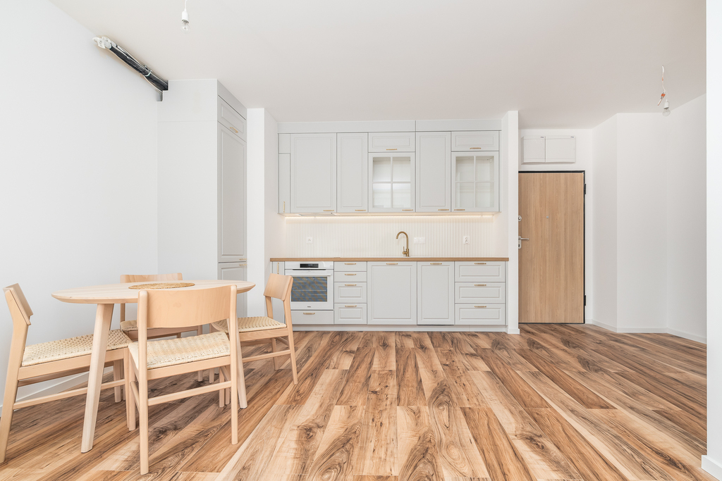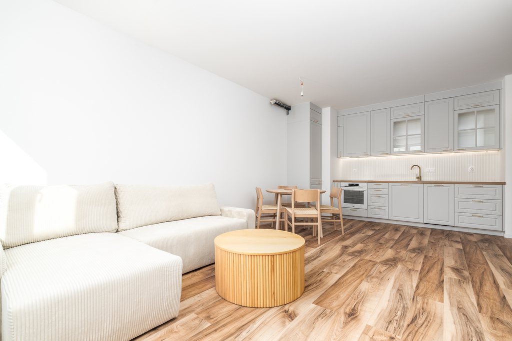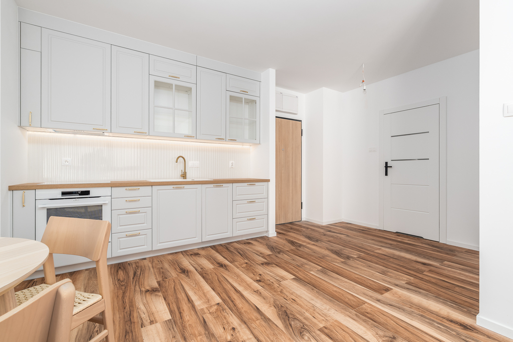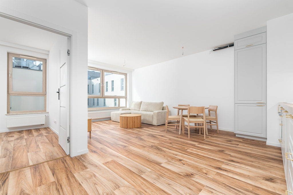 - Funkcjonalny układ : - pokój z aneksem kuchennym, sypialnia, łazienka z prysznicem.