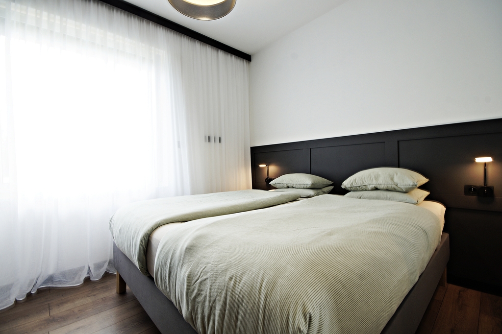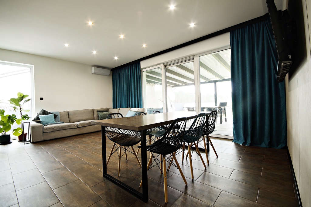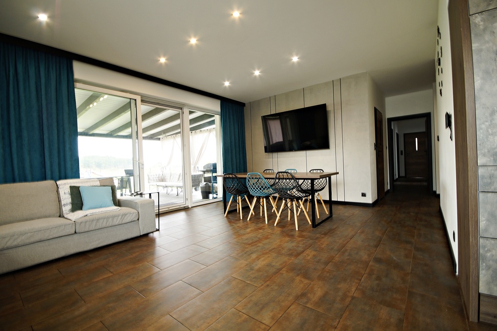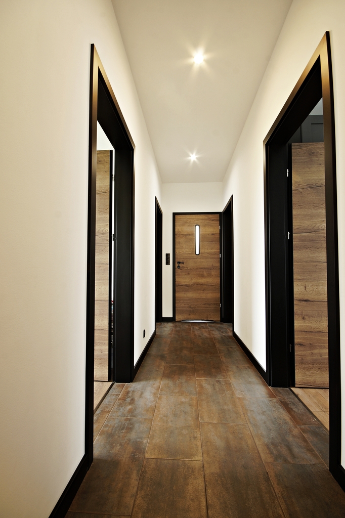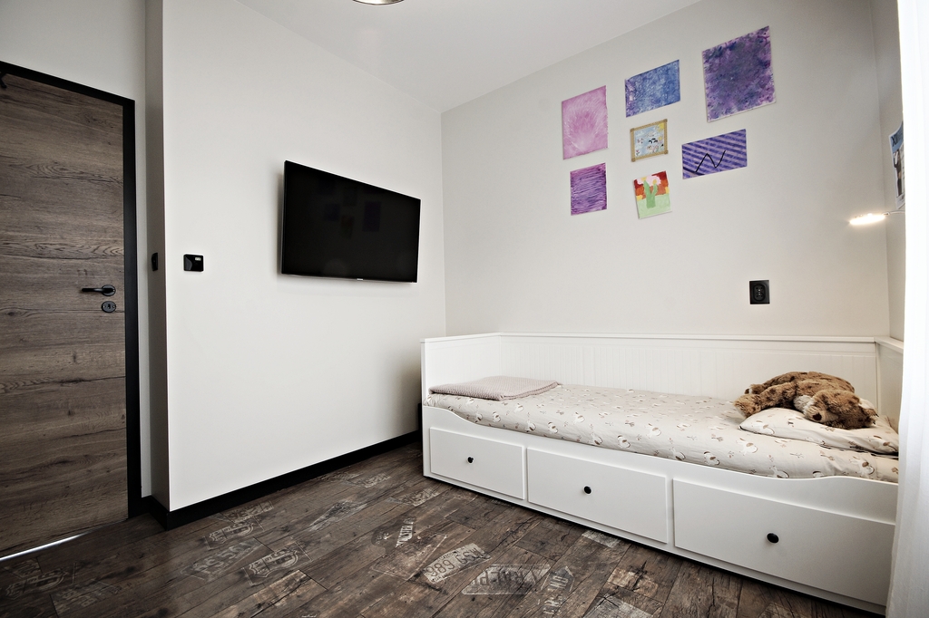 Dom o powierzchni użytkowej 106,6 m² składa się z 5 przestronnych pokoi, w tym dużego salonu połączonego z aneksem kuchennym oraz 4 sypialni. Z salonu jest bezpośrednie wyjście na słoneczny taras, gdzie można cieszyć się widokiem na otaczającą zieleń.