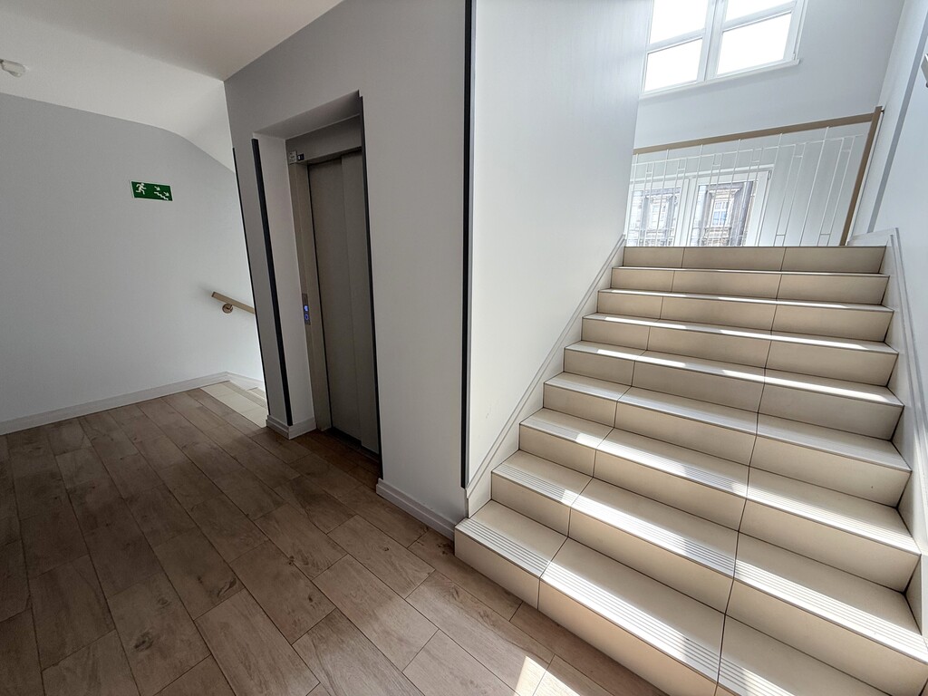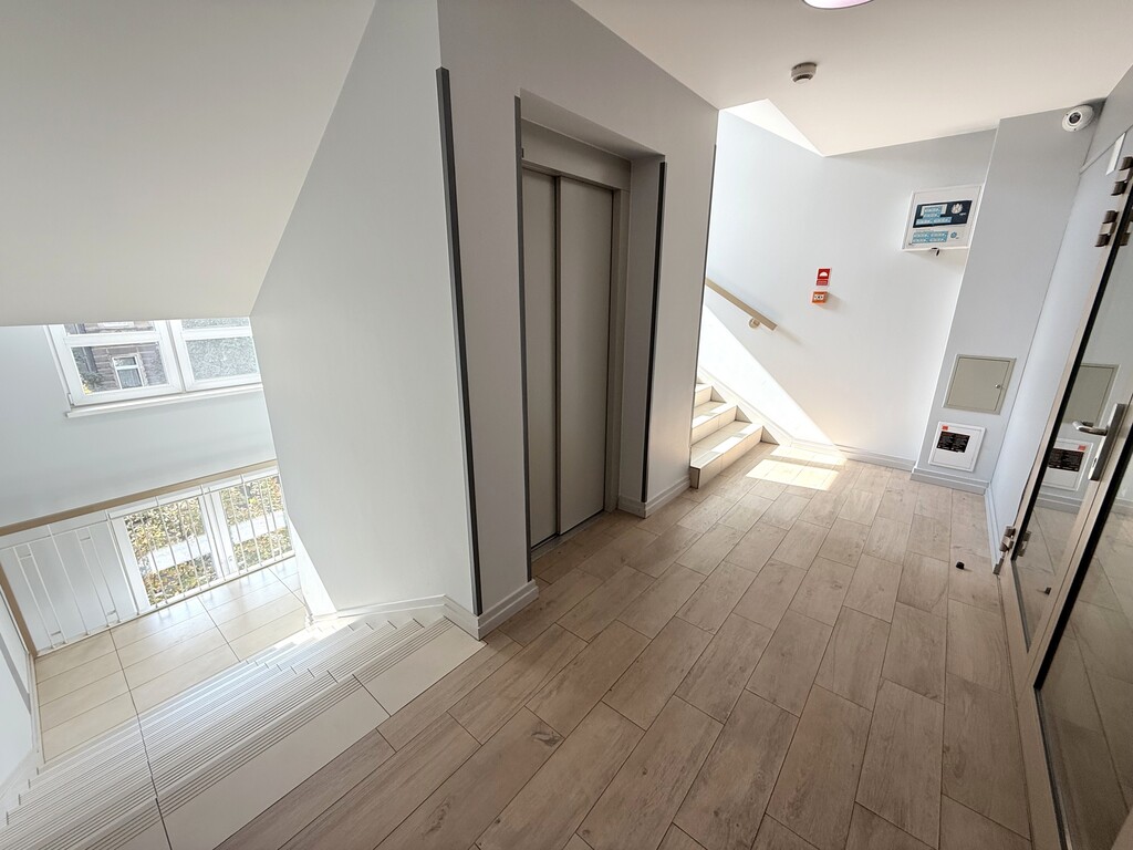 Budynek bez barier architektonicznych , nowoczesny, wyposażony w windę. Szeroka czysta  klatka schodowa.