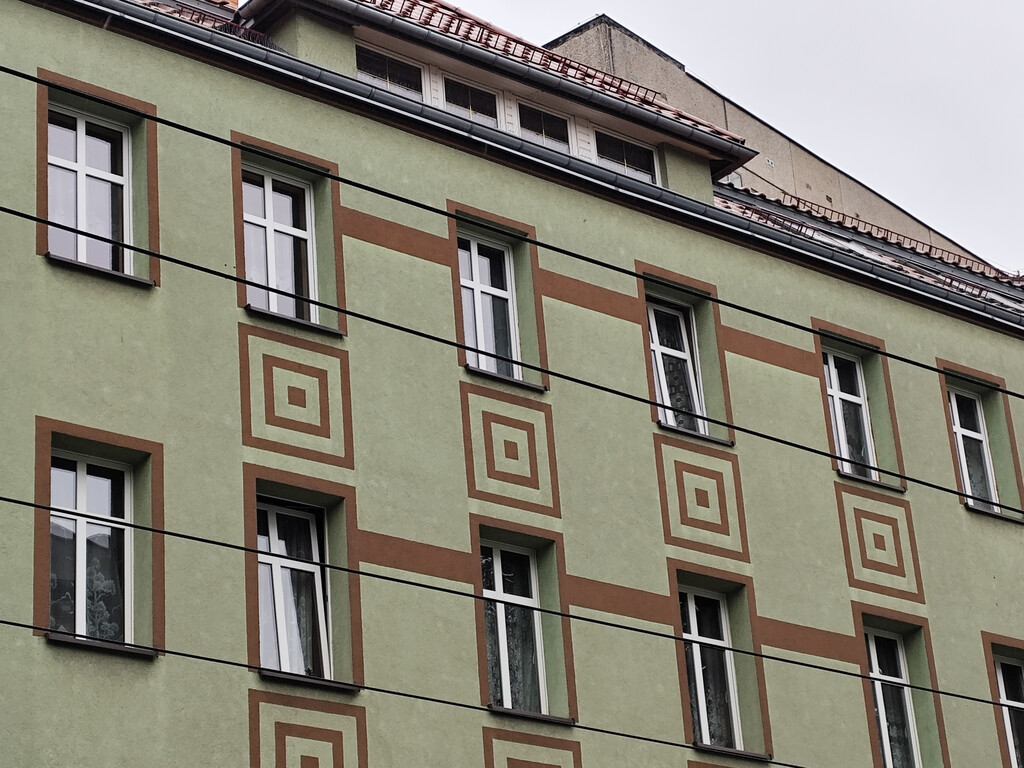 - kamienica po termomodernizacji - ocieplona z nową elewacją , pięknie odrestaurowaną klatką schodową , dachem z ceramiczną dachówką .