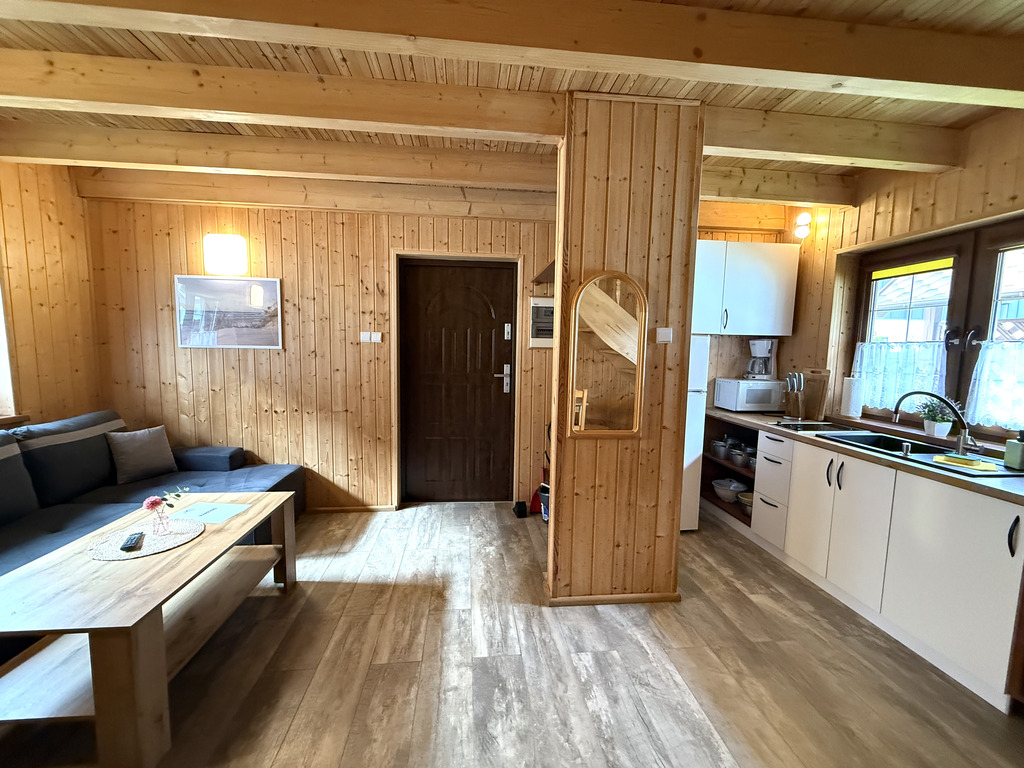 Kuchnia w pełni wyposażona, osobny pokój sypialny, łazienka, strych gospodarczy