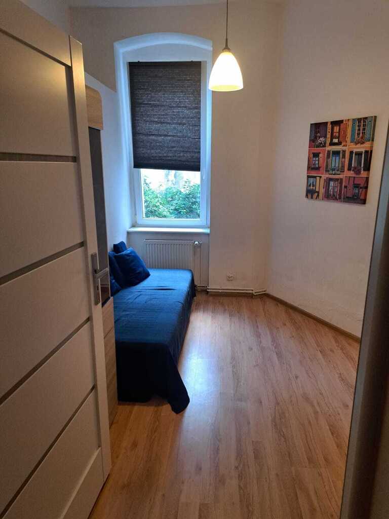 Mieszkanie jest w pełni rozkładowe, co zapewnia wygodę i funkcjonalność zarówno dla rodziny, jak i inwestora. Każdy z pokoi ma niezależne wejście, a kuchnia z dużym oknem daje możliwość swobodnej aranżacji i doświetlenia naturalnym światłem. Łazienka połączona z WC, wykończona glazurą i terakotą, również posiada okno, co znacznie zwiększa komfort użytkowania.