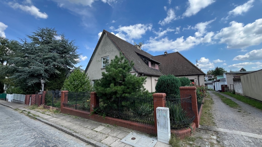 Do sprzedania połowa domu w zabudowie bliźniaczej zlokalizowana w starej części szczecińskiego Pogodna, w otoczeniu domów jednorodzinnych, na cichej i spokojnej ulicy. W bliskim sąsiedztwie znajdują się: przychodnie, szkoły, przystanki autobusowe oraz tramwajowe, apteki, przedszkola i żłobki.