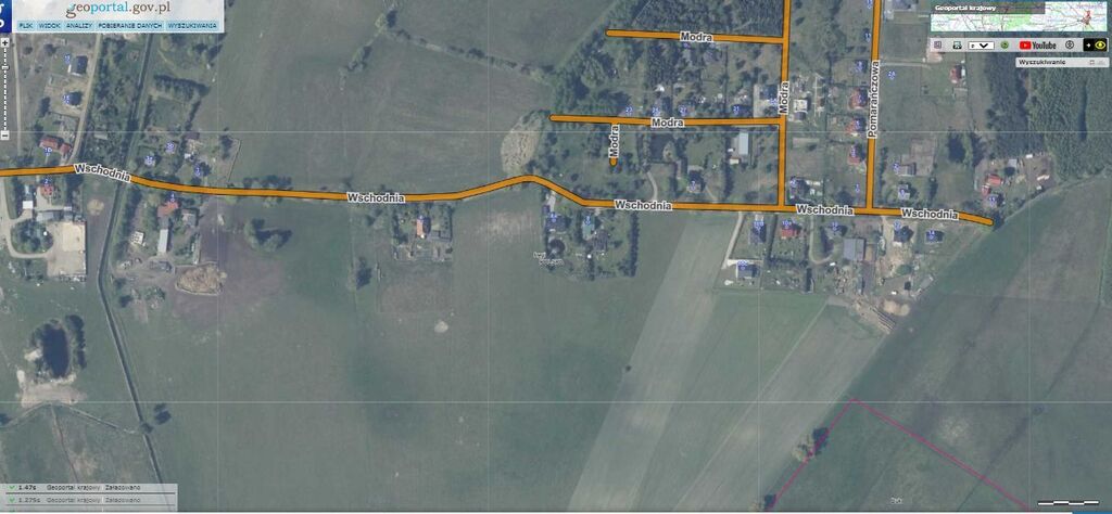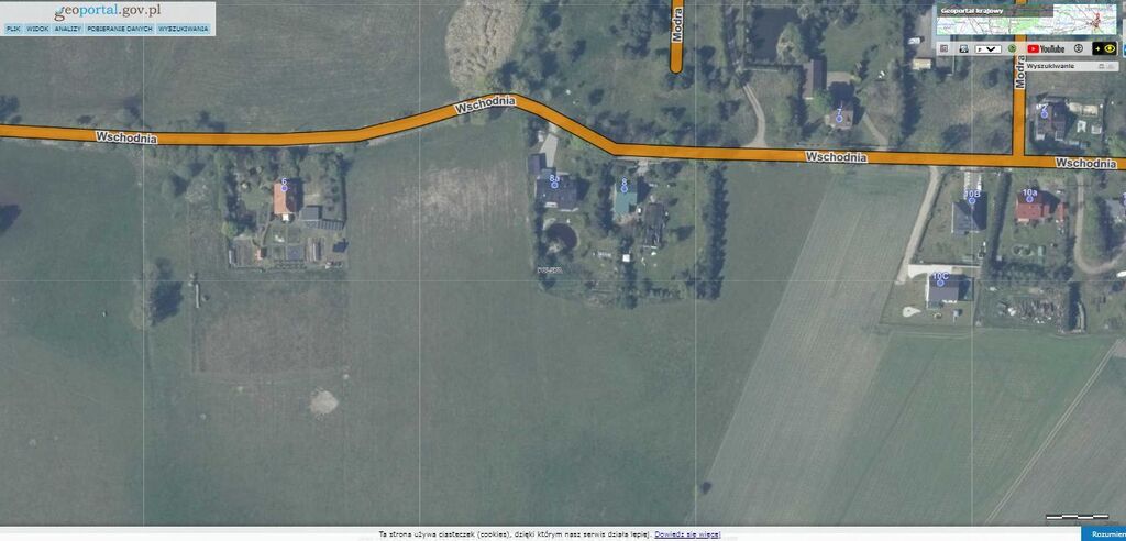 W drodze ul. Wschodnia znajduje się zabudowa mieszkaniowa jednorodzinna.