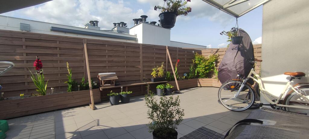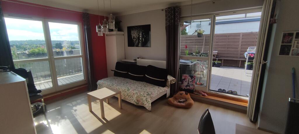 Salon z aneksem kuchennym o powierzchni 25,6m2 z wyjściem na piękny taras o powierzchni ponad 30m2 oraz osobny balkon.