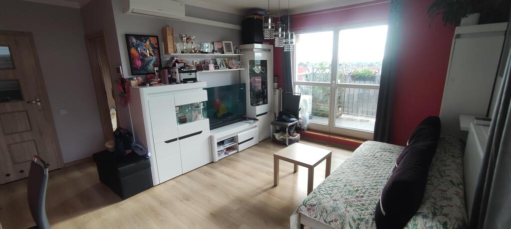 W cenie mieszkania pozostaje zabudowa kuchni wraz ze sprzętem AGD, dwie szafy w zabudowie (w małym pokoju oraz w przedpokoju), reszta mebli do uzgodnienia.