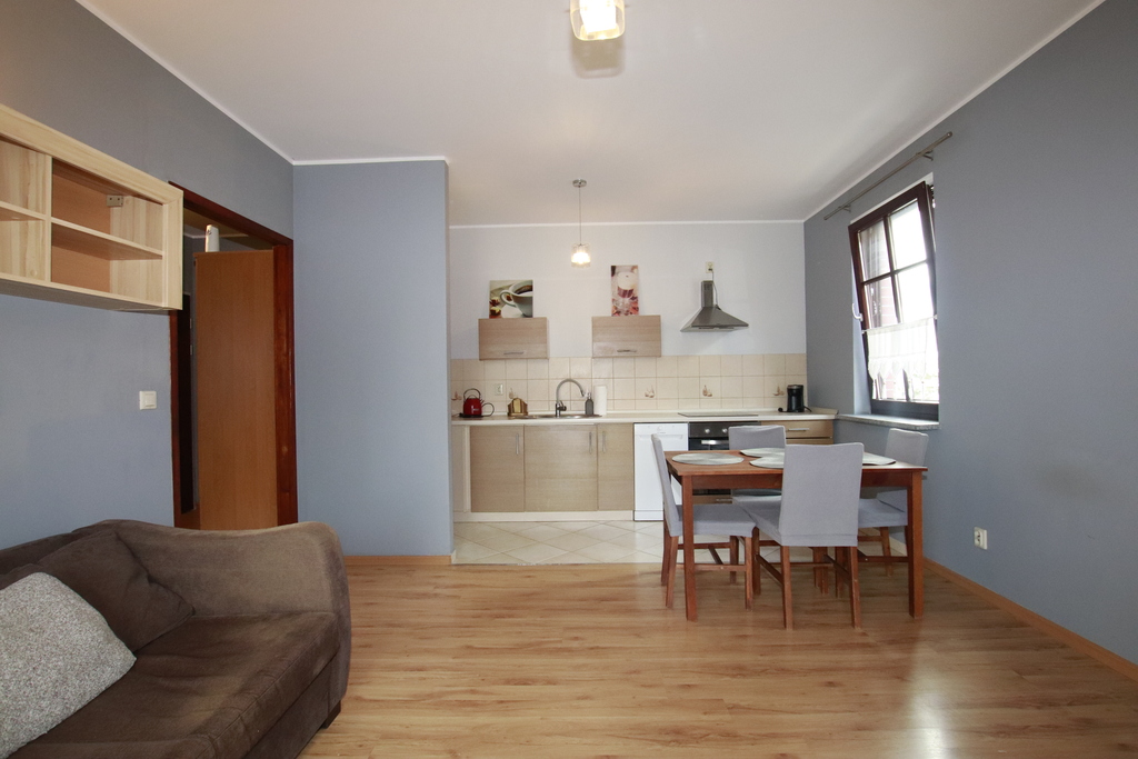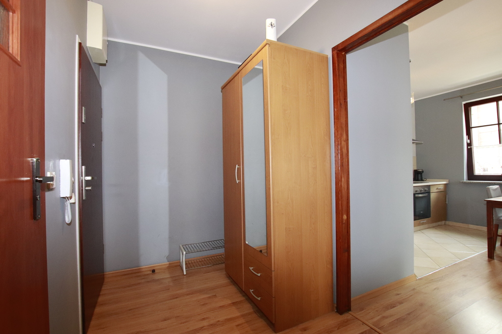 Mieszkanie o powierzchni 42 m² położone jest na pierwszym piętrze kameralnego budynku otoczonego zielenią i drzewami. Składa się z jasnego salonu z aneksem kuchennym, wygodnej sypialni, łazienki oraz przestronnego balkonu. Dodatkowym atutem jest miejsce postojowe na parkingu podziemnym. Całość tworzy funkcjonalną i komfortową przestrzeń, idealną zarówno dla singla, jak i pary.