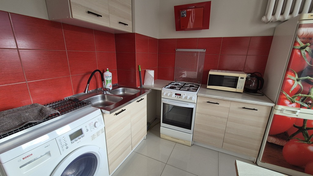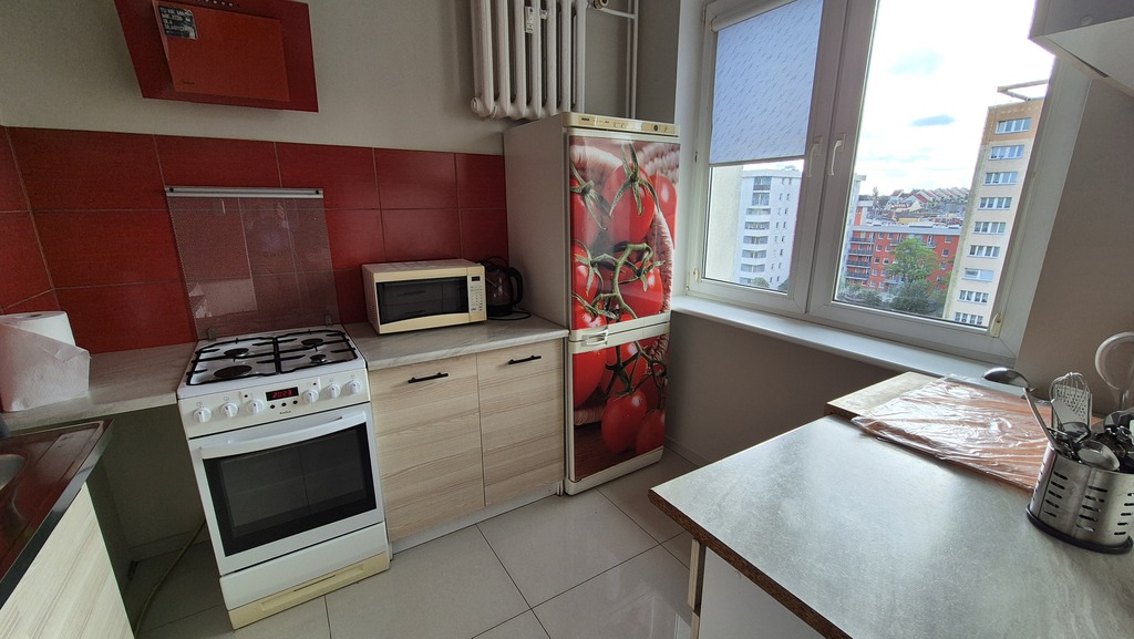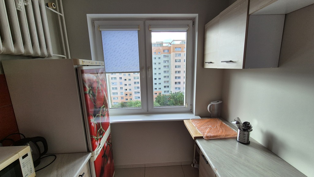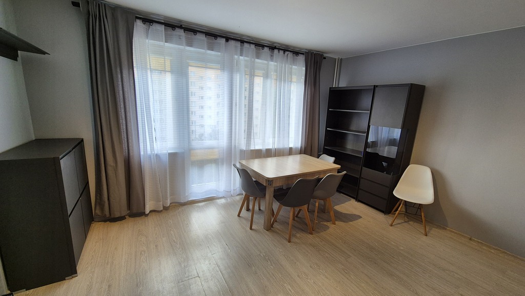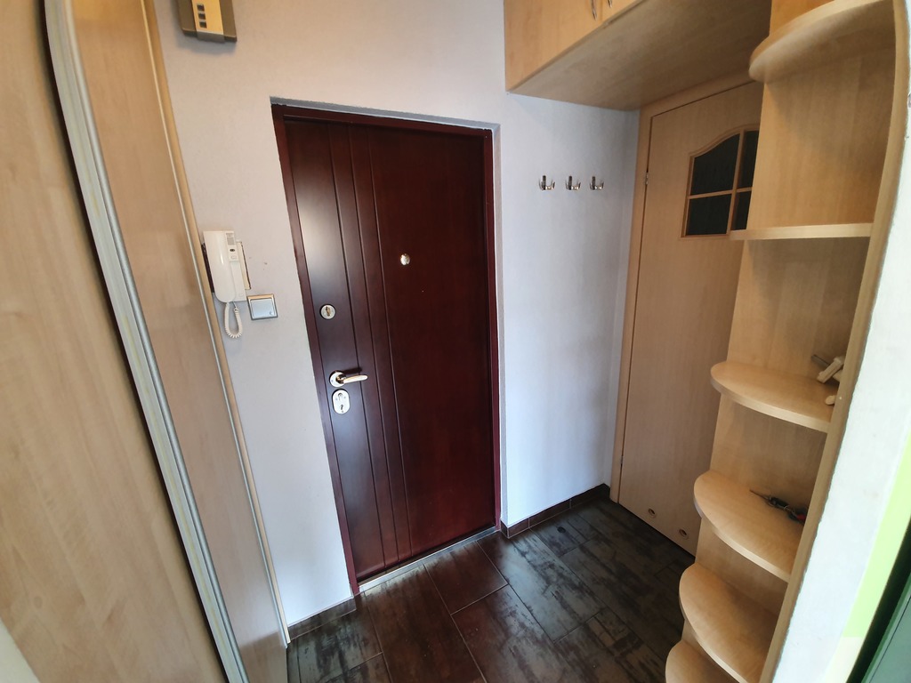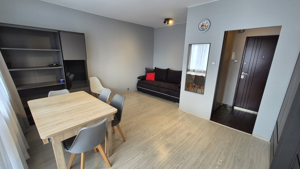 Mieszkanie ma 30,94m2 na co składa się pokój ok 19m2 (od strony południowej) umeblowany w kanapę rozkładaną (nowa), meblościankę stół. Kuchnia ok 6m2 wyposażona i umeblowana (lodówka,pralka,piekarnik). Łazienka ok 3 m2 z kabiną prysznicową wc i umywalką. Korytarz z zabudowaną szafą. Do lokalu wchodzi się przez drzwi antywłamaniowe. Opłaty dodatkowe to: czynsz adm (ok 589,62 zł z zaliczkami na wodę i ogrzewanie (przy 1 osobie), prąd, gaz i ewentualnie Internet. Kaucja 3000