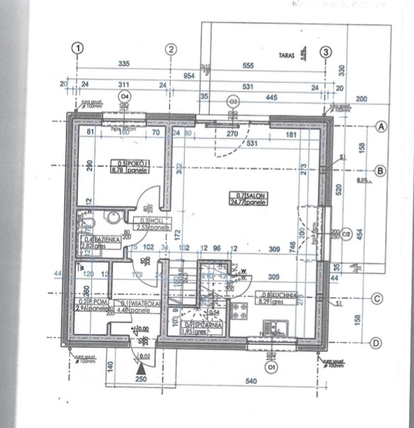 Pas wokół budynku (ok. 50 cm) należy utwardzić grysem, kostką brukową lub płytką chodnikową z nadaniem spadku na zewnątrz,