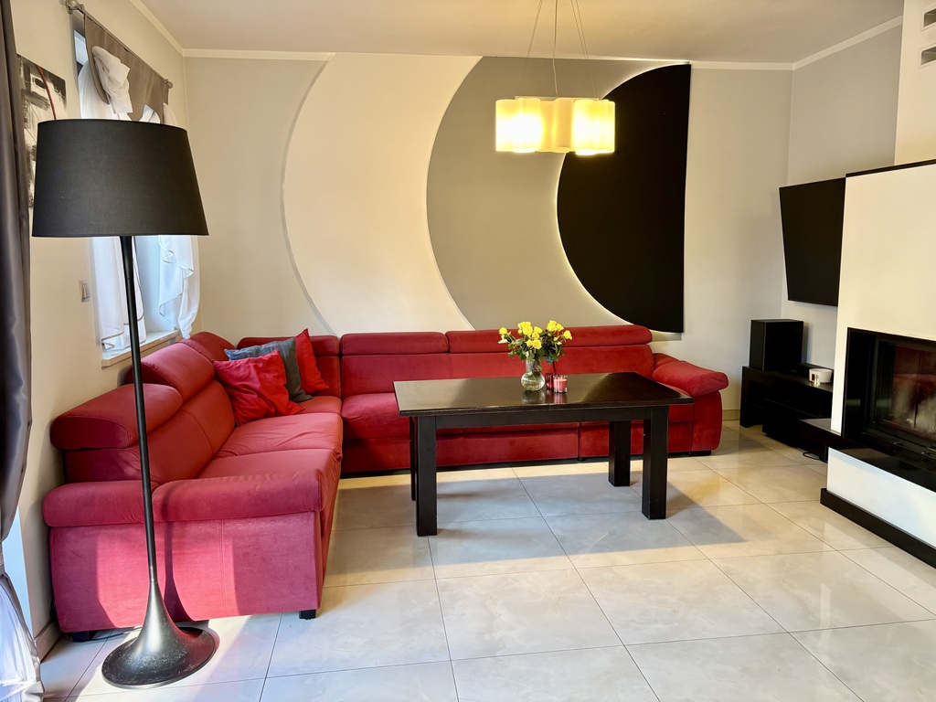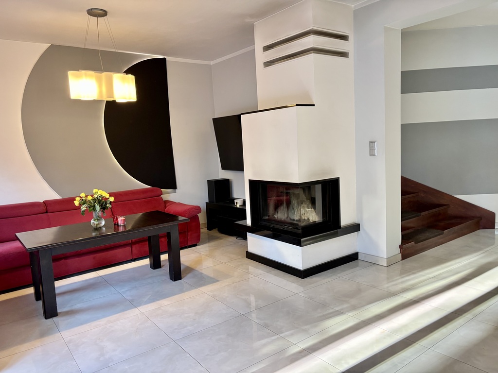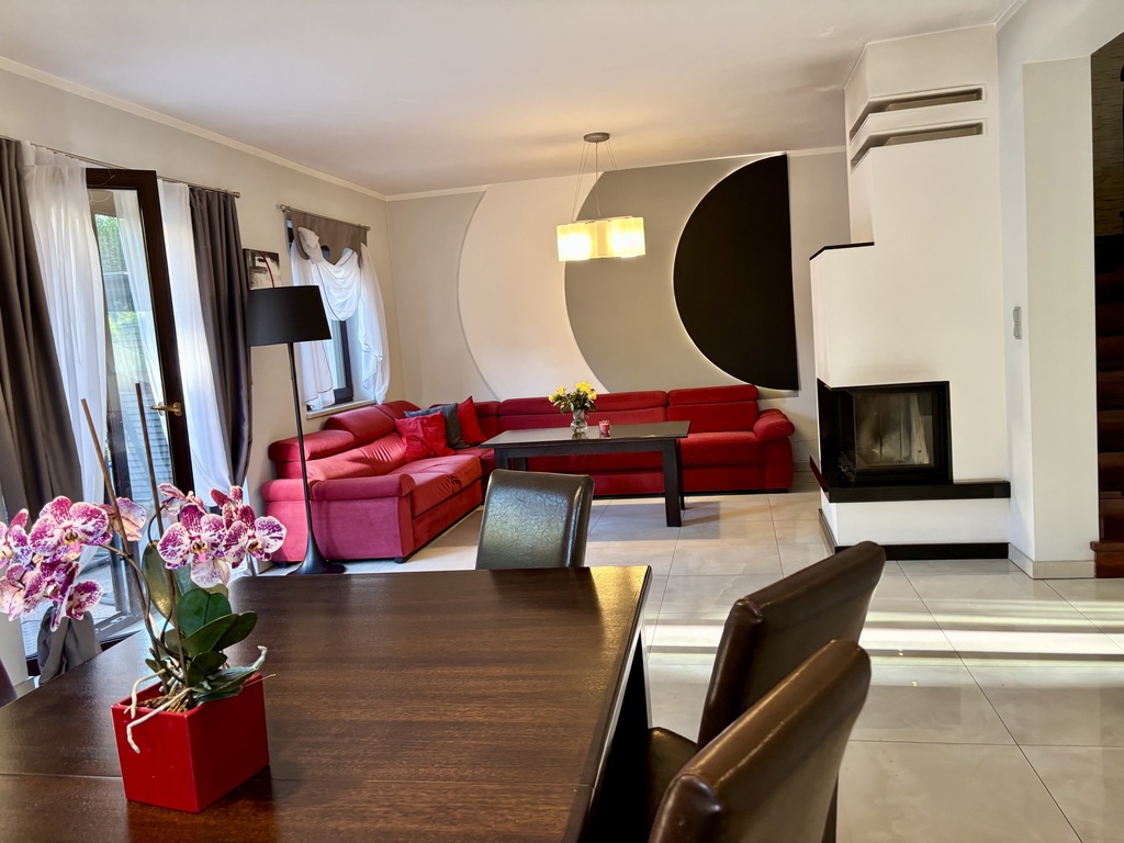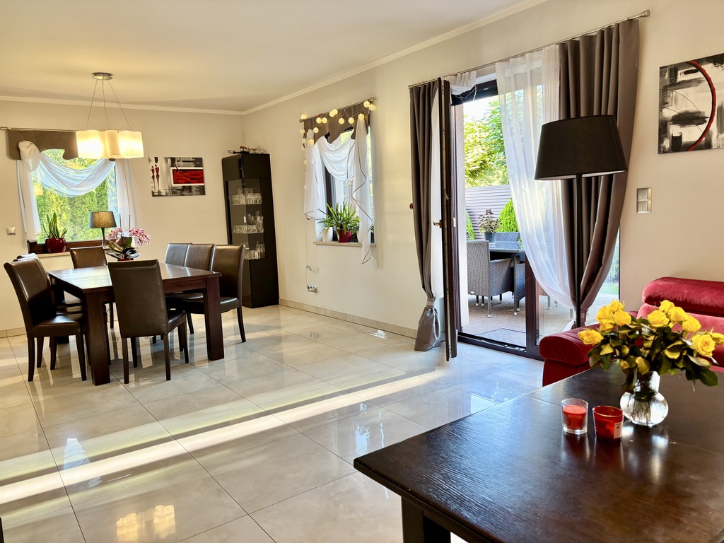 • Przestronny salon z wyjściem na taras i ogród,