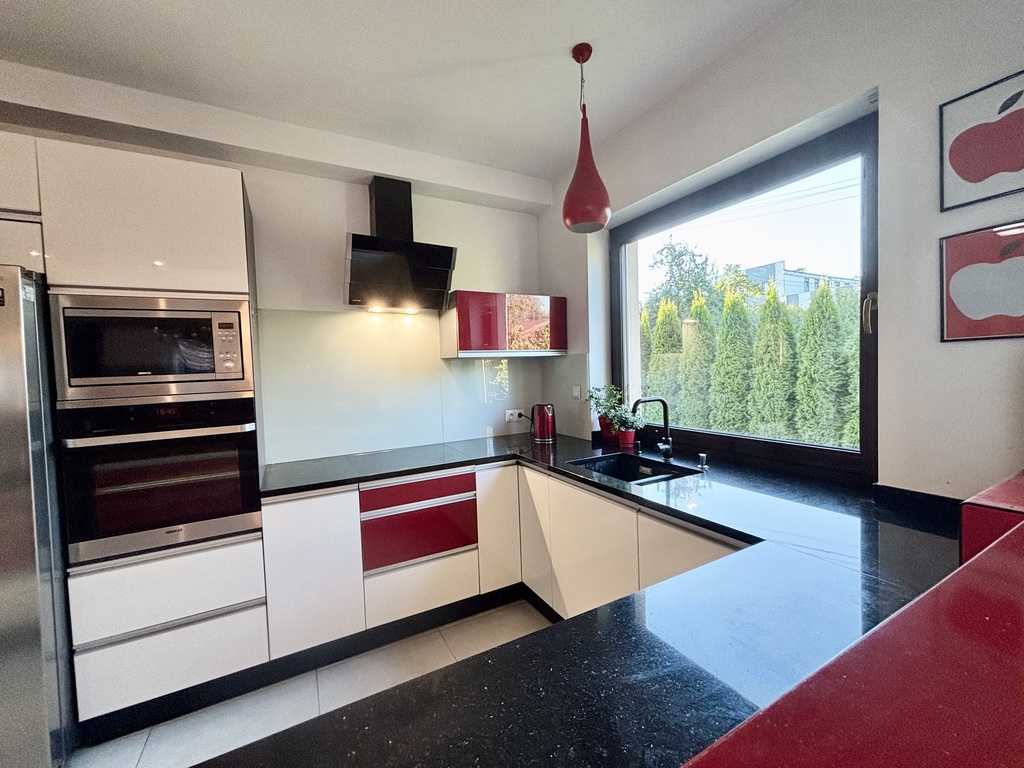 Nieruchomość została wykończona w wysokim standardzie z użyciem materiałów klasy premium, co czyni ją idealną propozycją dla osób poszukujących wygodnego i funkcjonalnego miejsca do życia.