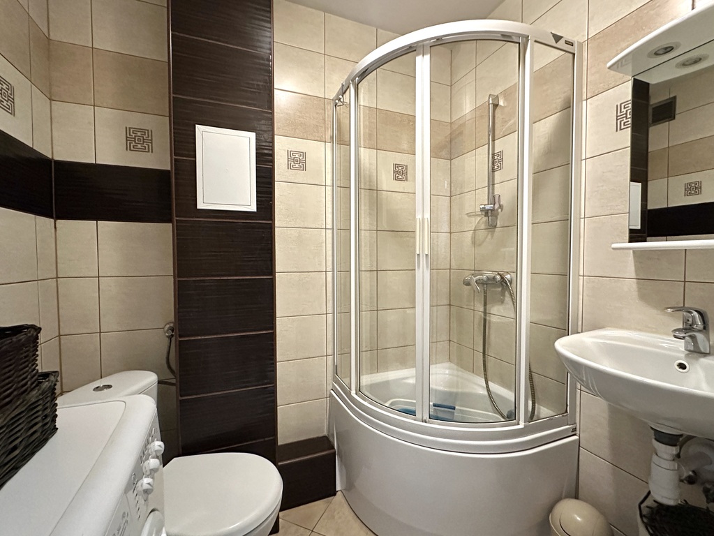 - kuchnia - w pełni wyposażona w AGD: mała lodówka, zmywarka, piekarnik, mikrofalówka