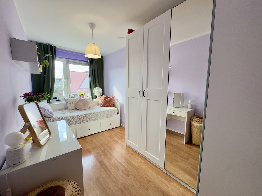 * dwie niezależne sypialnie – jedna od wschodu, druga od zachodu – każda o powierzchni ok. 10,5 m²,