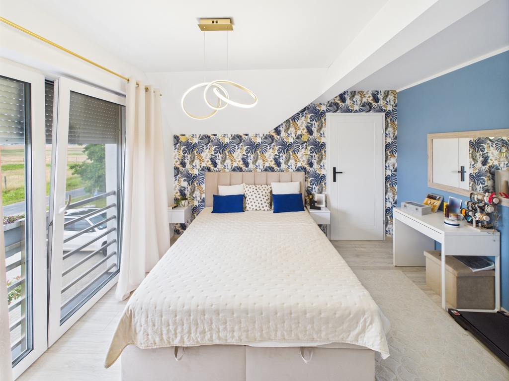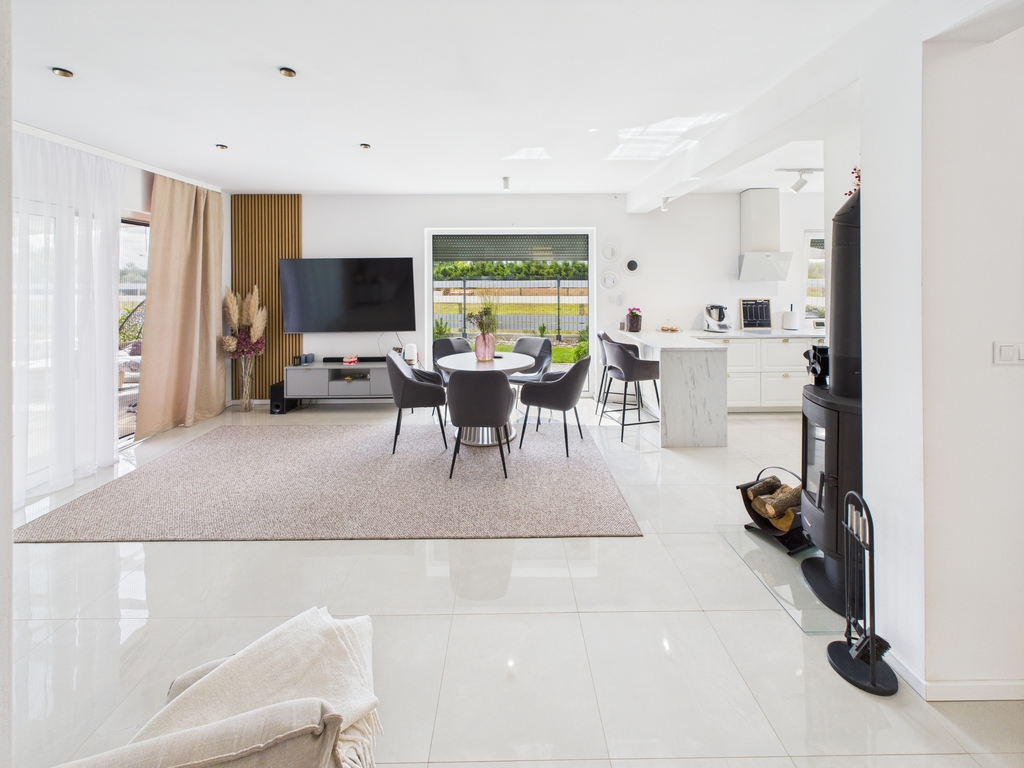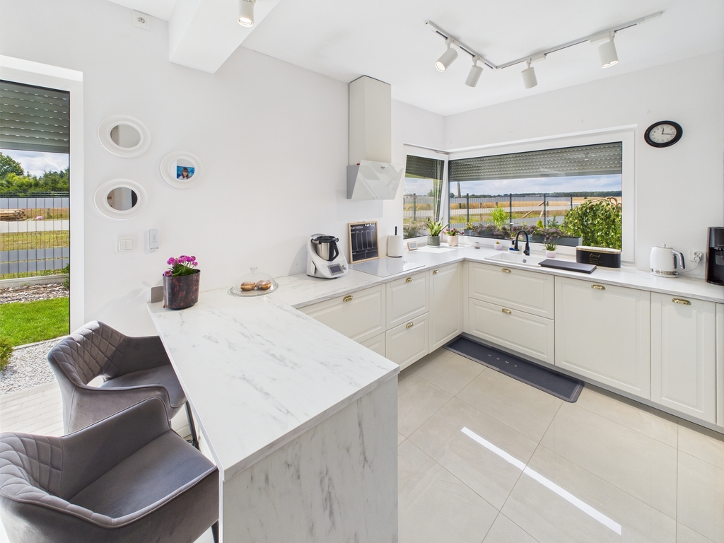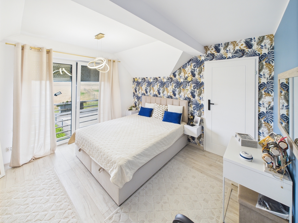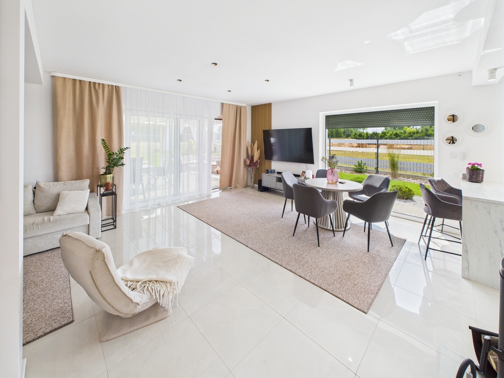 Dom został oddany do użytku pod koniec 2022 r. i jest wykończony materiałami najwyższej jakości. Wnętrza zostały zaprojektowane z myślą o wygodzie i funkcjonalności.