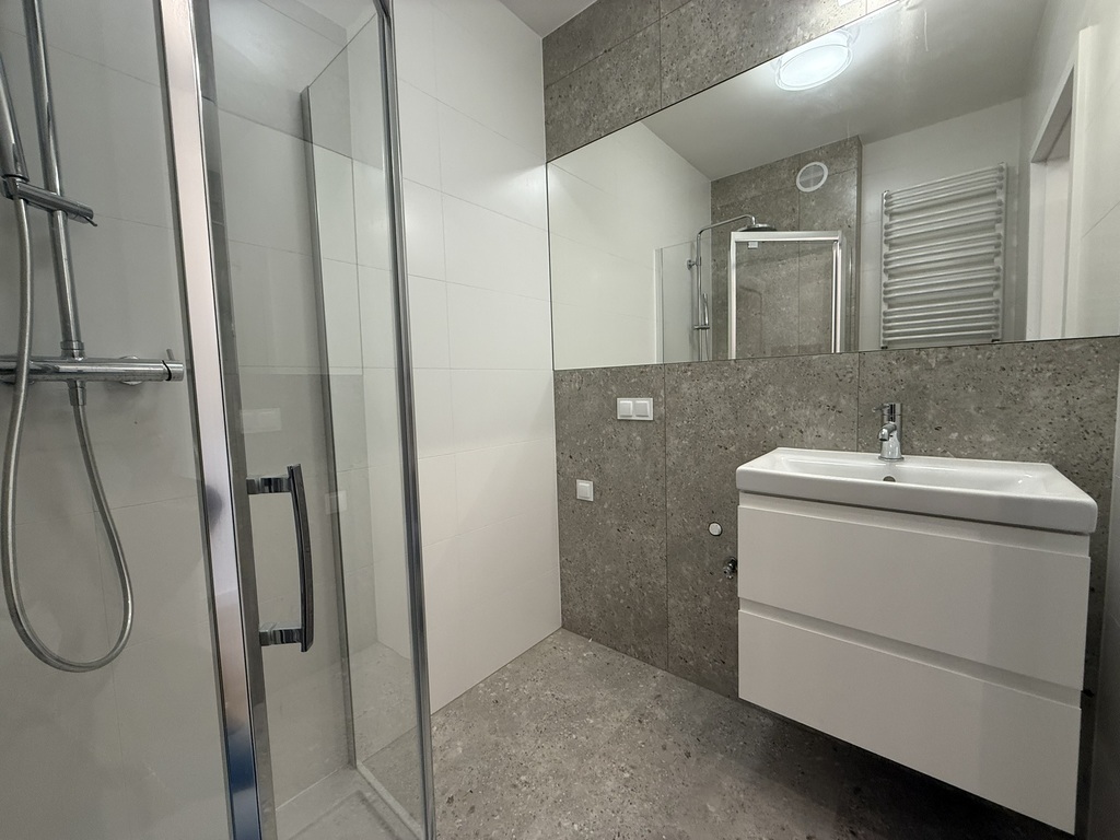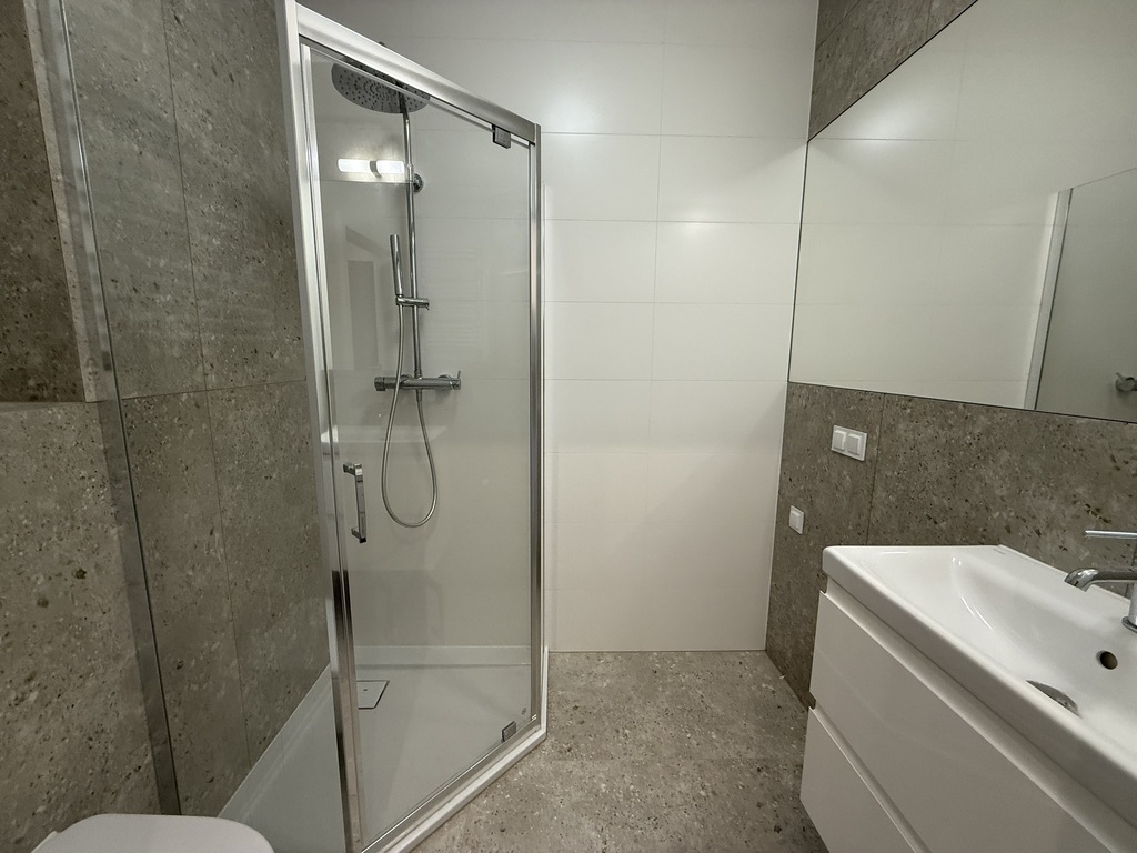 • Układ: przestronny salon z aneksem kuchennym, łazienka z prysznicem, balkon z widokiem na zieleń