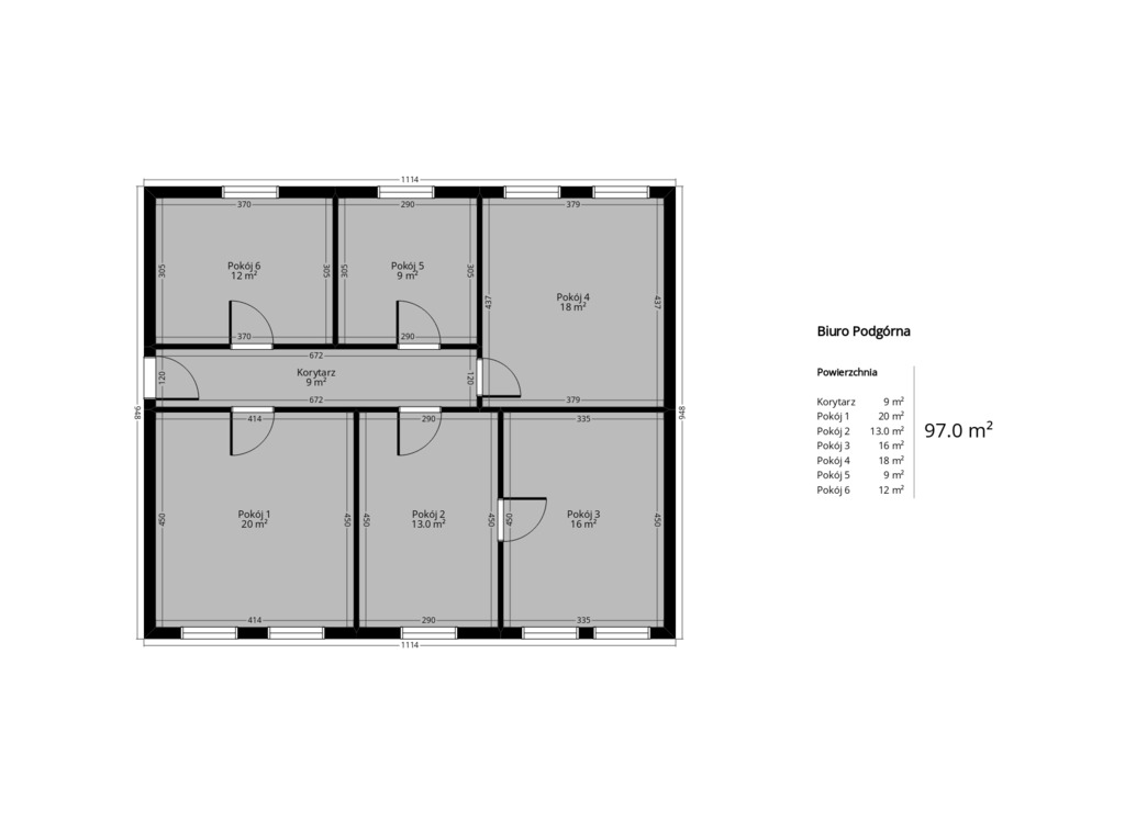 - składa się z korytarza oraz 6 pokoi, z których 5 posiada osobne wejście, natomiast jeden jest przechodni zgodnie z zamieszczonym rzutem pomieszczeń