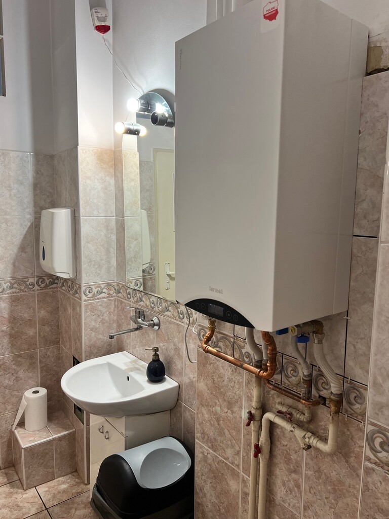 Mieszkanie przeszło generalny remont i obecnie składa się z 5 pomieszczeń biurowych oraz kuchni przeniesionej do schowka gospodarczego.