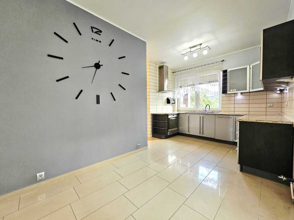 Na powierzchnię parteru budynku, pełniącego jednocześnie rolę strefy dziennej domu, składają się: kuchnia z jadalnią, przestronny salon z którego wychodzi się na taras oraz zaaranżowany ogród, łazienka z wc, pomieszczenie sanitarno - gospodarcze z bezpośrednim wejściem do garażu (2. stanowiskowy, z bramą otwieraną na pilota), korytarz i wiatrołap. Na piętro nieruchomości prowadzą piękne, marmurowe schody (Breccia). W górnej części domu, pełniącej głownie strefę nocną, stanowią 3. sypialnie, pokój wielofunkcyjny, główna łazienka z wc oraz korytarz.