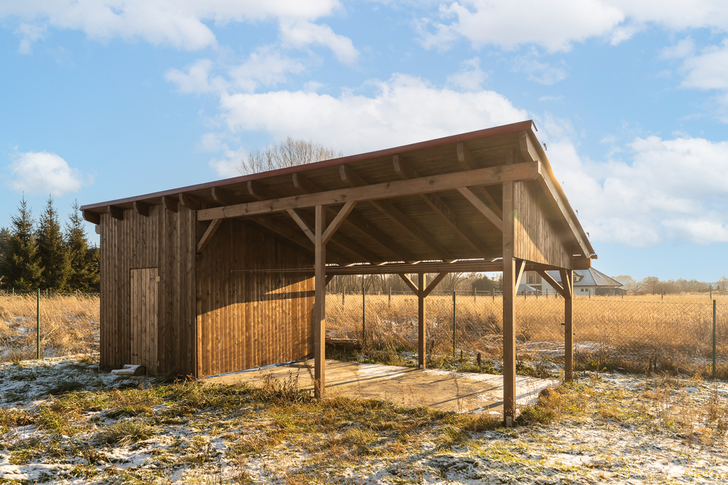 Instalacja fotowoltaiczna 9 kW (zamontowana na estetycznej wiacie za domem).