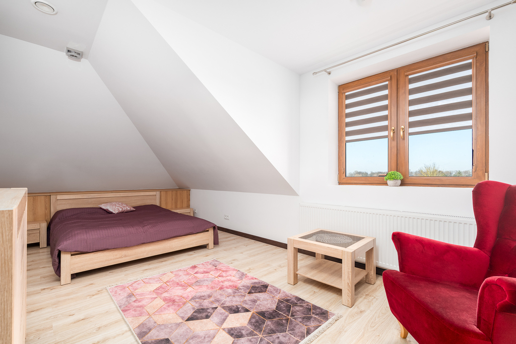 7 minut pieszo do lasu oraz bezpośrednie sąsiedztwo tras rowerowych prowadzących m.in. nad jezioro Głębokie.