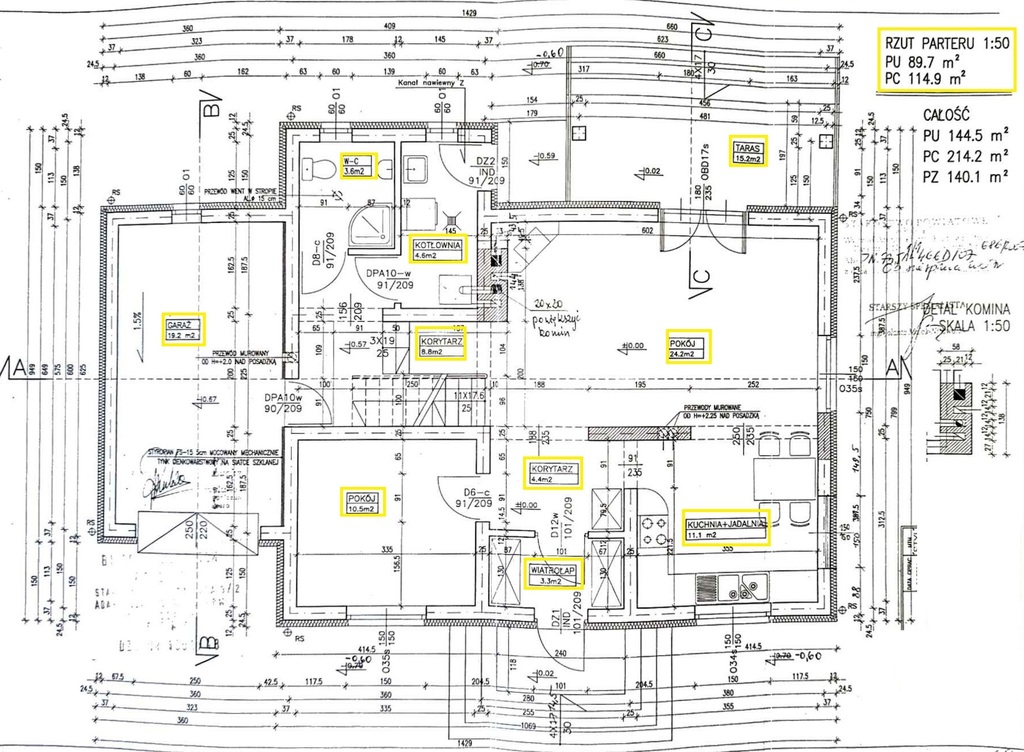 Powierzchnia użytkowa: 144,50 m² (całkowita 214,2 m²).
