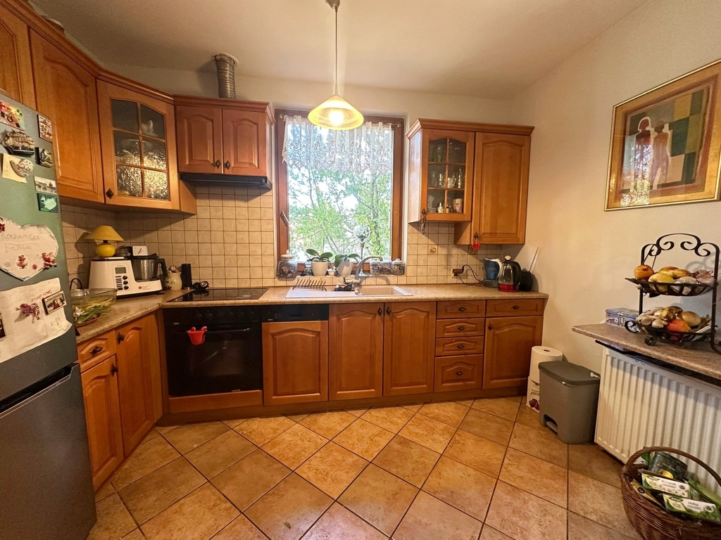 Kuchnia wyposażona jest w drewniane fronty w oraz sprzęt AGD. Drewniane pogłogi.