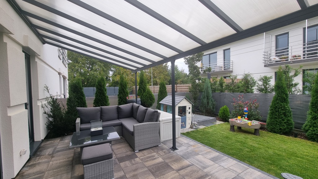 W ogrodzie znajdziesz liczne nasadzenia, domek ogrodowy o powierzchni 7 m² oraz duży, zadaszony taras (20 m²), idealny na poranną kawę czy spotkania z przyjaciółmi.