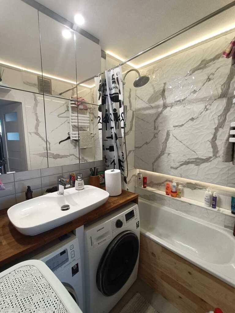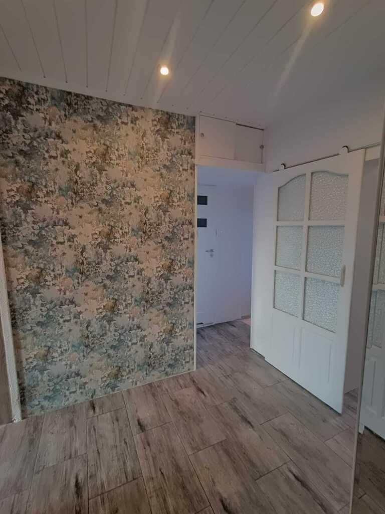 Mieszkanie po remoncie.. Ściany w pokojach pokryte tapetą i fototapetą, w kuchni częściowo glazura, częściowo malowane, w łazience na ścianach glazura. Kuchnia , wyposażona w meble i w sprzęt AGD. Łazienka wyposażona w wannę z deszczownicą. Osobne WC wykończone glazurą i terakotą. WC i łazienka wykończone modną glazurą.