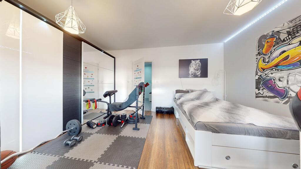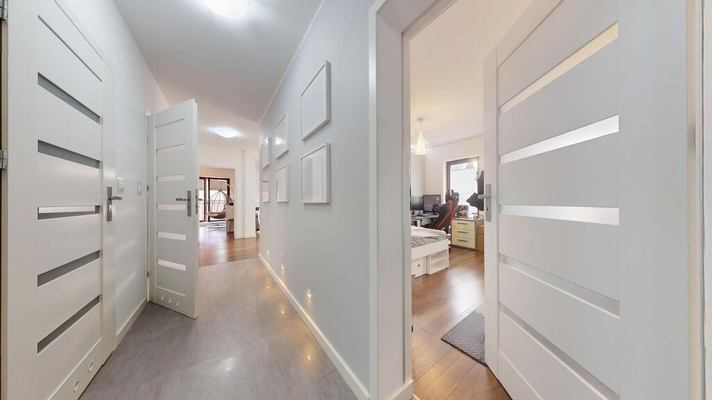 Pierwotnie (oraz według księgi wieczystej) mieszkanie było 4 pokojowe. Obecni właściciele na etapie urządzania, połączyli 2 sypialnie w jedną wielką. Stawiając jedną ściankę oraz drzwi, niewielkim kosztem można uzyskać mieszkanie 4-pokojowe.