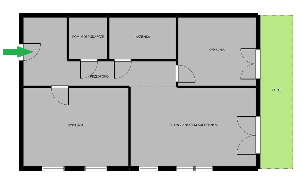- sypialnia z szafą w zabudowie oraz wyjściem na wspomniany wyżej taras,