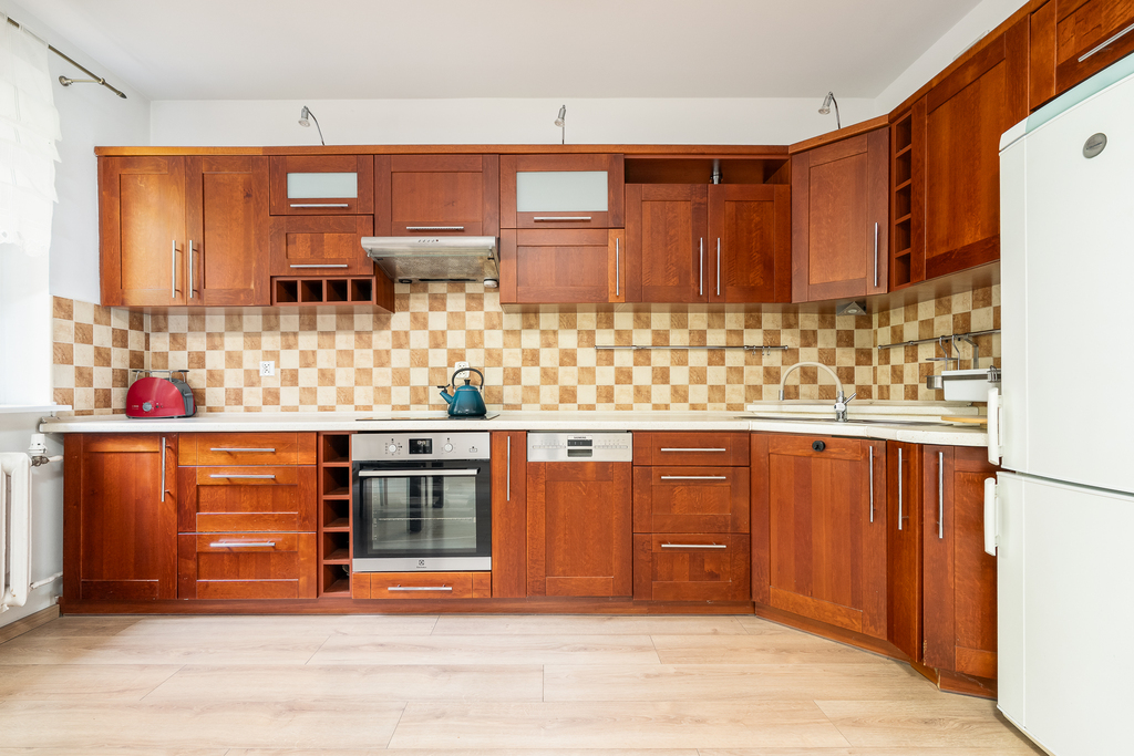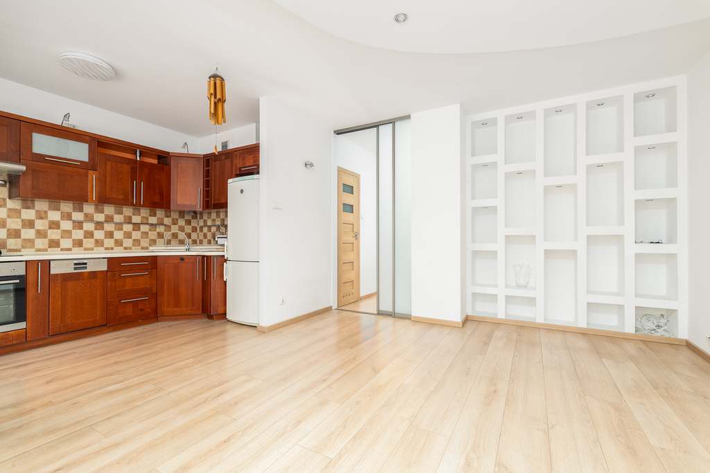 • Aneks kuchenny z oknem (łączny z dużym pokojem), umeblowany i wyposażony w sprzęt AGD.