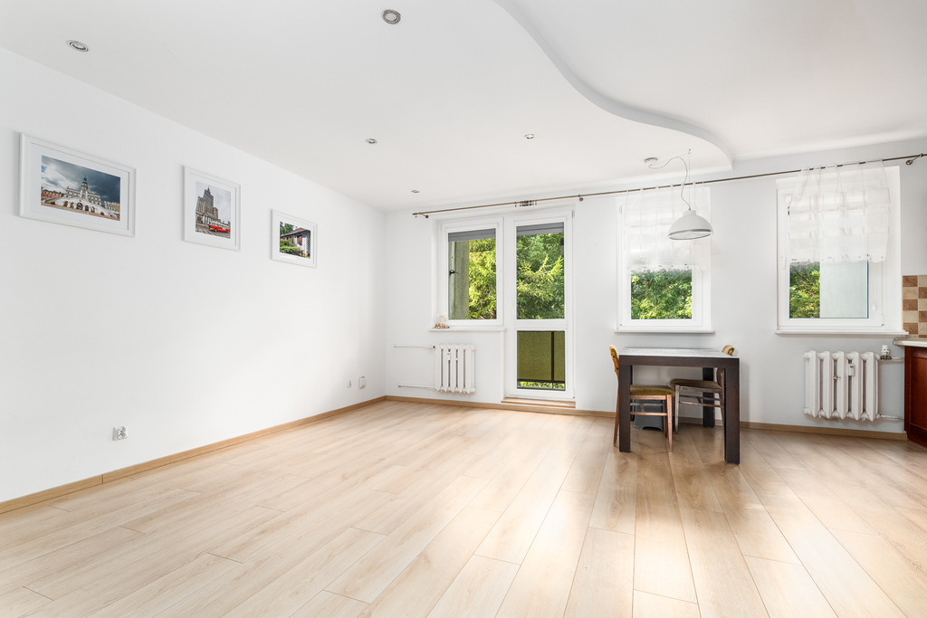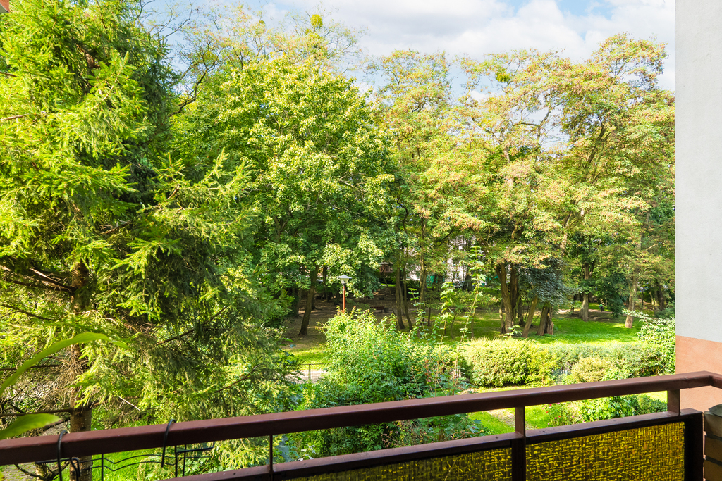 • Duży pokój z bezpośrednim wyjściem na balkon – widok na park.