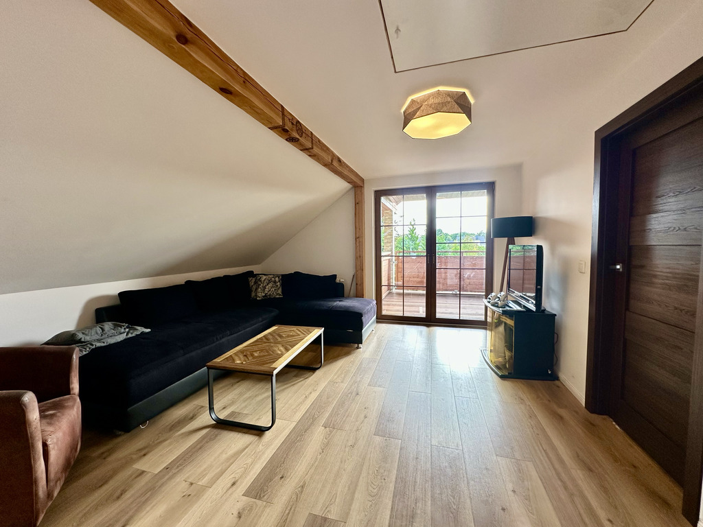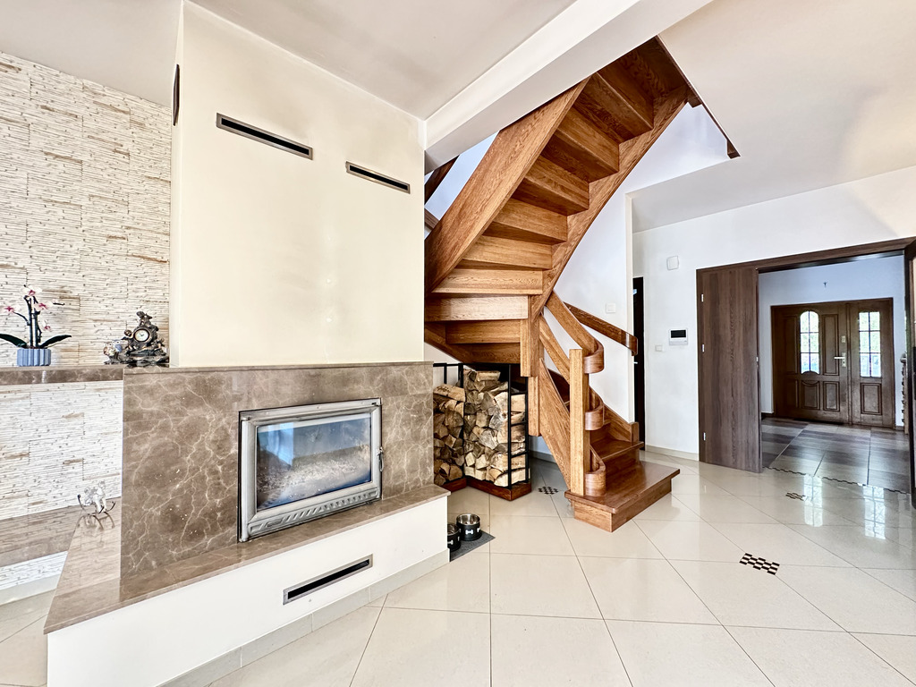 • Przestronny salon z kominkiem (32 m²) i wyjściem na taras,
