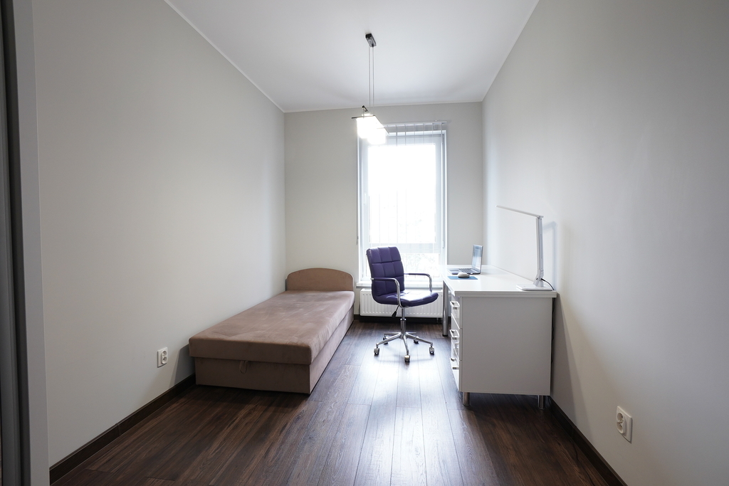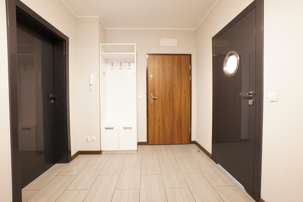 • Trzy niezależne pokoje (salon i dwie sypialnie) – bardzo rozkładowe, z osobnym wejściem do każdego pomieszczenia.