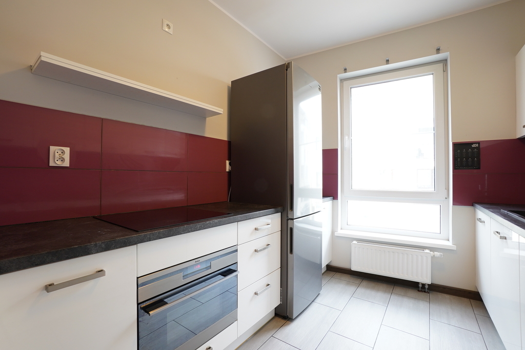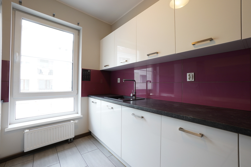 • Oddzielna, jasna kuchnia z pełnym wyposażeniem (meble kuchenne, sprzęt AGD).