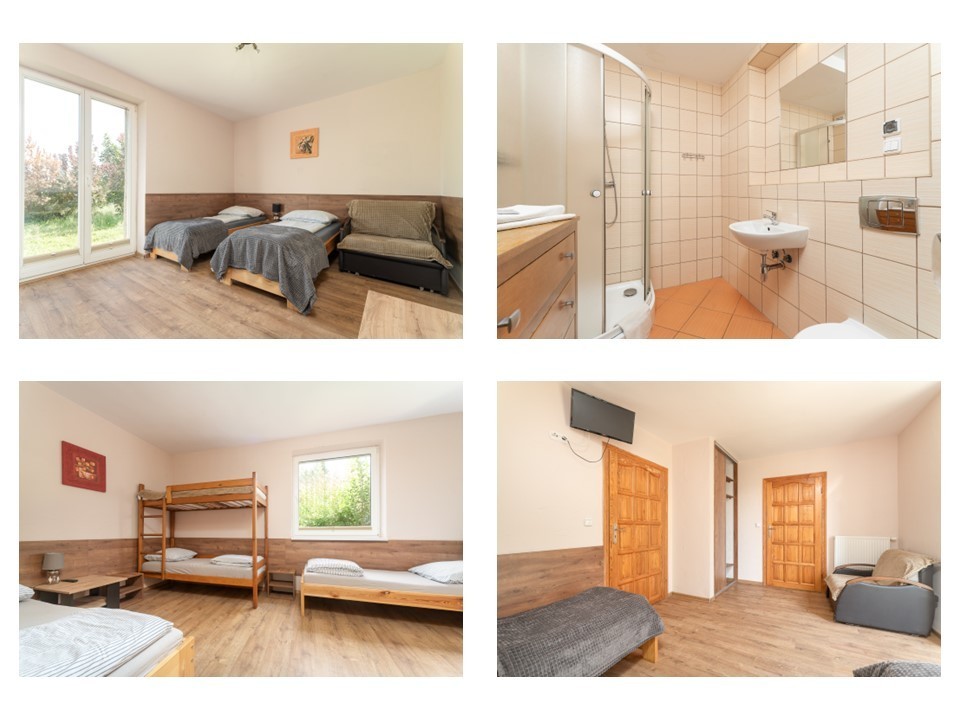 1. Budynek noclegowy z wyposażonymi w pełni pokojami 3- i 4-osobowymi z łazienkami (8 na parterze i 10 na piętrze).