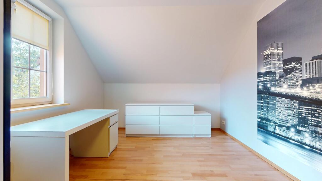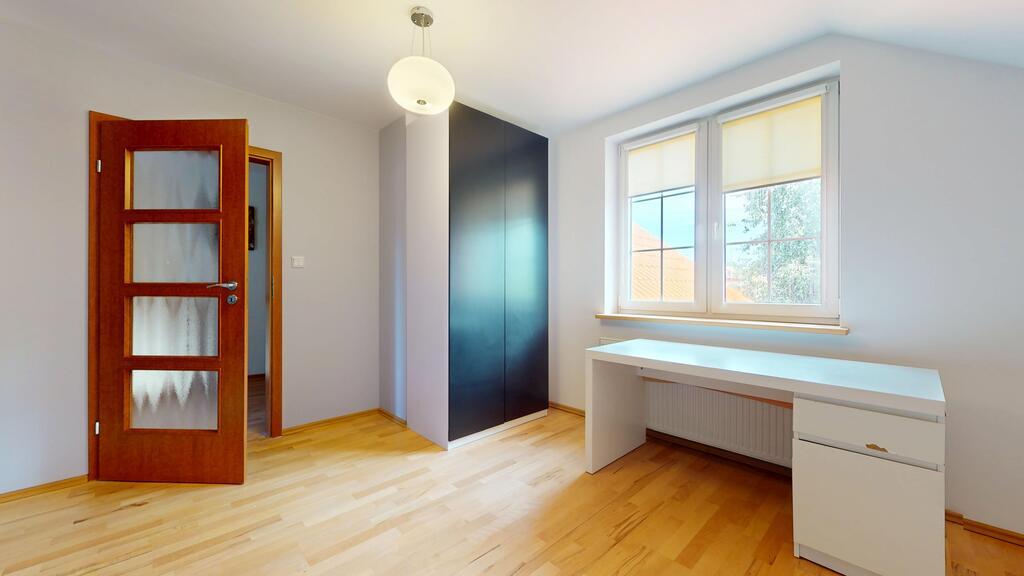Na parterze oprócz salonu dodatkowy pokój, obecnie funkcjonuje jako gabinet, na piętrze 3 pokoje; to tylko niektóre atuty nieruchomości.