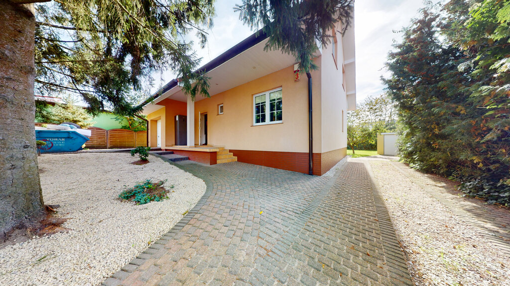 Dom wolnostojący parterowy z poddaszem użytkowym z wbudowanym garażem, dodatkowo na działce postawiony został drugi garaż na kolejne auto. Działka o powierzchni 639 m2 ma kształt prostokąta z ogrodem i tarasem od strony południowej. Powierzchnia całkowita domu to 203,75 a użytkowa 115,6 m2.
