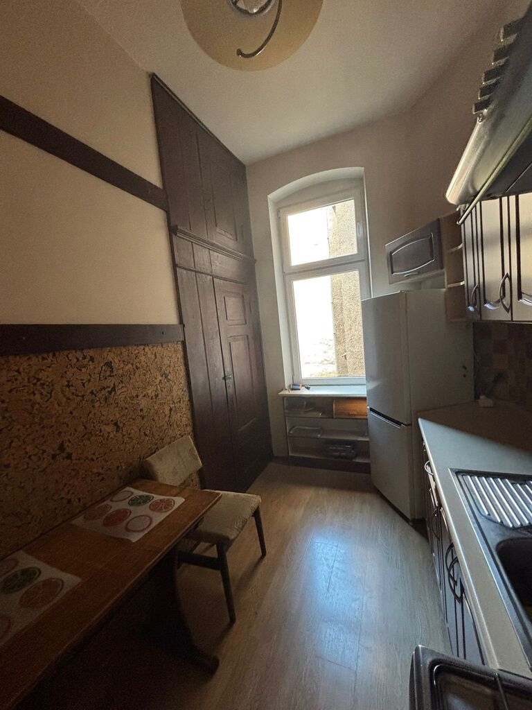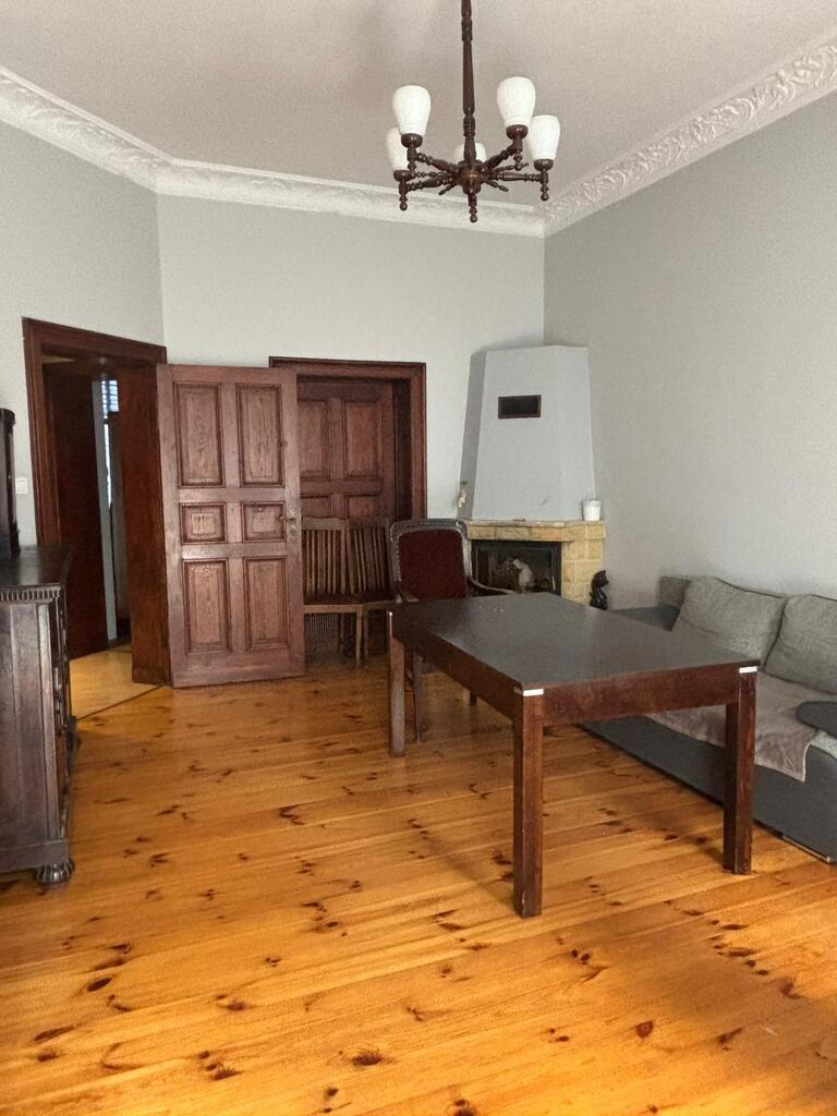 Wnętrze zachwyca oryginalnymi detalami – zachowane drzwi, sztukateria, wysokie sufity oraz deski podłogowe w pokojach tworzą unikalny klimat przedwojennego mieszkania. Dodatkowo, komfort podnosi kominek, który nadaje wnętrzom wyjątkowego charakteru.