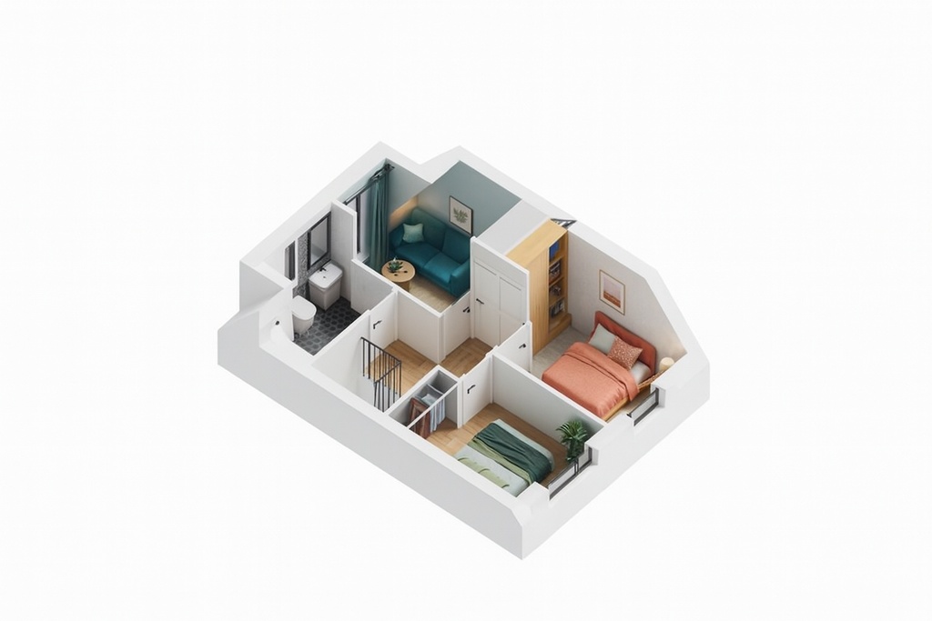 * **Piętro (użytkowe poddasze)**: trzy wygodne sypialnie i łazienka — doskonałe dla rodziny lub jako przestrzeń do pracy.