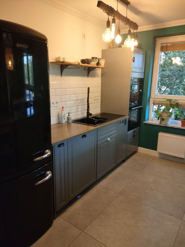 Zabudowana meblami na wymiar ze sprzętem AGD.W pokojach na podłodze deska drewniana,kuchnia i łazienka w terakocie i glazurze.Okna PCV,ściany gładzone malowane.