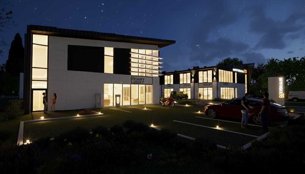 Na nieruchomości zaprojektowano dwa nowoczesne budynki usługowo-magazynowe z reprezentacyjnymi przeszkleniami, możliwością ekspozycji i dogodnym dojazdem.