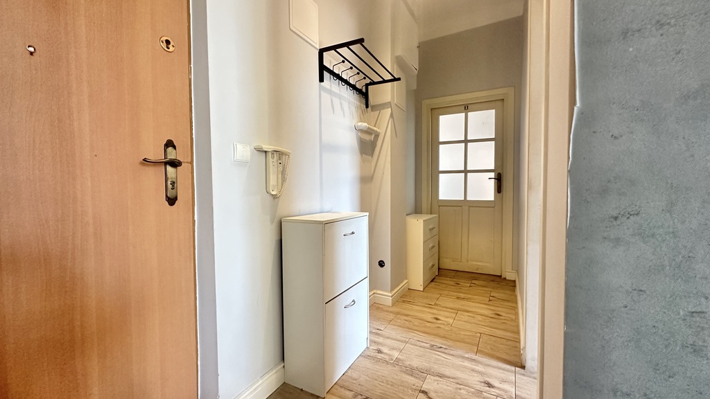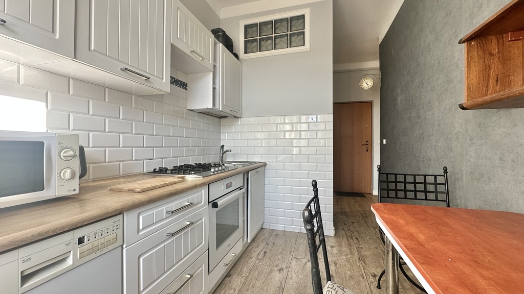 Na powierzchnię mieszkania składają się dwa pokoje, widna kuchnia, łazienka z prysznicem oraz korytarz. Jeden z pokoi posiada wyjście na balkon.