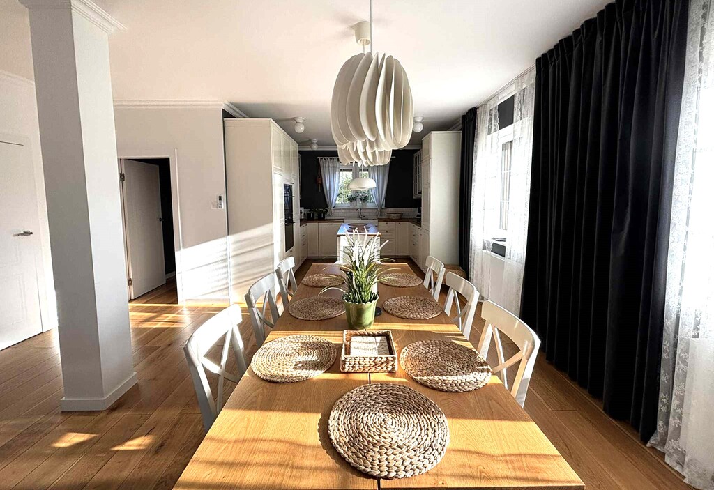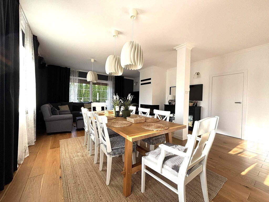 Dom wykończony w wysokim standardzie konsekwentnie utrzymany w klasycznym i bardzo eleganckim stylu.